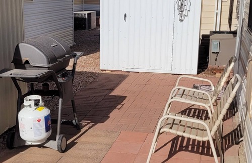 Unwind in Apache Junction at this charming 55+resort. This adorable property features a cozy Q. bed and 2nd Arizona family room. With amenities like fireplace, 2 TVs, BBQ, 2 bikes, W/D, games and patios, guests can feel right at home. Fall in love with Apache Junction and enjoy the magic it has to offer. Close to the Rec room and pools(One guest must be over 55) link: Superstition Sunrise, 55+ RV Resort Home Community.
