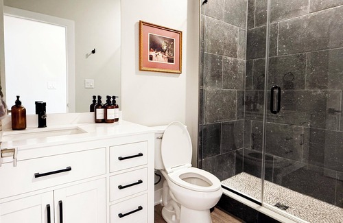 Welcome to your perfect home away from home! This spacious 1,500 sq ft 2 bed, 2 bath apartment features 1 king bed, 2 queen beds, a large living room with a comfy sectional, and a fully equipped kitchen with modern appliances. Enjoy spacious bathrooms, thoughtful design, and a private parking spot. Whether you're here for work or relaxation, this stylish space offers the comfort and convenience you need for an unforgettable stay!