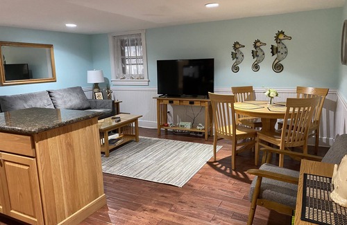 Our lower level suite, The Terrace, offers 2 bedrooms and a recently updated kitchen/living area as well as a full updated bathroom. Although you may be tempted to step back in time when you enter Cape May, be assured that we provide all of the modern conveniences to make you stay enjoyable. Our kitchen is equipped with granite counters, dishwasher, oven, stove, refrigerator, and microwave. Central air conditioning, a 50" flat screen TV in the living area, a 28" flat screen TV in the main bedroom, and a two step down rear courtyard private entrance make it an ideal suite for families and seniors. A sleeper sofa in the living room allows accommodations for 6 guests.