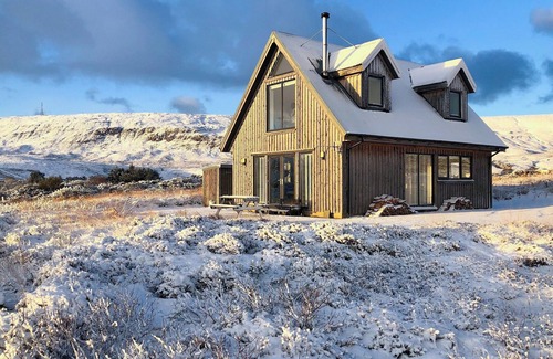 Bathroom: Bath, Toilet. Air source heat pump underfloor central heating, electricity, bed linen, towels, Wi-Fi and logs for wood burner included. . Large garden with patio and garden furniture. Private parking for 3 cars. No smoking. Please note: Electric vehicle charging is prohibited.. This timber faced property was built in 2019 and sits in an elevated position overlooking Loch Dunvegan with views towards the castle. The property has a modern open plan living space taking full advantage of the outstanding views. The ground floor has a well-equipped kitchen and dining area, living room with a wood burner and an open plan staircase to the first floor. There is also a separate shower room on the ground floor and the owner has thoughtfully provided complimentary toiletries. On the first floor is the comfortable master bedroom with a huge picture window overlooking the loch, a second double bedroom and a stunning bathroom. The property sits in a great sized plot and is ideal for guests wanting to escape and experience the rural lifestyle of Skye. It is ideal for walkers, cyclists and outdoor enthusiasts or people just wanting peace and quiet. Beach 1 mile. Shop and pub 5 miles, restaurant 1 mile.