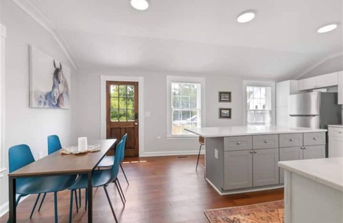 Book now & receive a free bottle of wine at check-in PLUS a 20% discount off food and alcohol at Well Hung Vineyard Restaurant! Conveniently located in the heart of downtown Gordonsville, this newly renovated home offers 2 bedrooms w/ queen beds, full bathroom and ½ bath, full kitchen, office space, living room, and washer & dryer. High speed internet, keyless entry, private driveway & street parking available. Walking distance to local boutiques, wineries & restaurants.