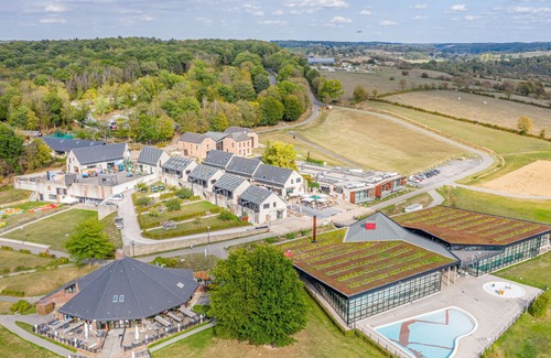 On the north shore of Lac du Valjoly, the residence is made up of 180 accommodations divided into semi-detached cottages or hamlets of semi-detached single-storey timber-framed cottages residence, surrounded by trees and meadows. Outside the resort, 3 km from the centre of Eppe Sauvage. In the complex: reception, internet access, washing machine, tumble dryer (for shared use, extra). Parking. Grocery, restaurant 500 m. Hiking paths: Parc Naturel Régional de l'Avesnois. Please note: car recommended. The photograph shows a typical example. Additional accommodations can be booked. Free access to the indoor aquatic center with wave pool, rapid river, waterfalls, massage jets.... Relaxation area, activities to be paid on site: sauna, hammam, nautical base, equestrian centre, mountain biking. Satellite TV (extra). TV rental 35 euros/week. Free Wi-Fi at reception.
