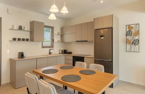 This brand-new villa is perfect for travelers who value both style and convenience. Featuring two beautifully appointed bedrooms, each with its own private en-suite bathroom, Villa Erato is ideal for couples, friends, or families seeking a sophisticated getaway. The open-plan living space, tastefully furnished with high-end, contemporary pieces, is designed for relaxation and enjoyment.