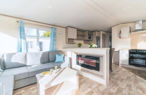 This stylish caravan is great for family and friends looking for break away, featuring comfortable master double and two cosy twins, along with a modern shower room. With large windows to let the light flood in the stylish open-plan living area features a well-equipped contemporary kitchen, living area with comfortable sofas and a dining area. Pets allowed in selected accommodation only.