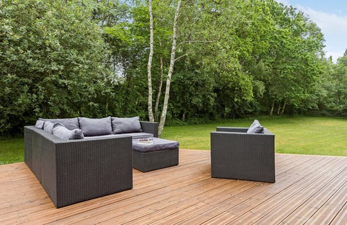 Welcome to this beautiful vacation home, which offers you the best conditions for your vacation with cozy living rooms and bedrooms as well as a large conservatory. Step inside and relax in the bright ambience with lovely decoration. While the eat-in kitchen invites you to enjoy breakfast together in the morning, you can end the evenings with a movie night on the sofa by a crackling fire in the wood-burning stove. The conservatory adjoining the living room is also a great place to eat or play with the best view of the garden.