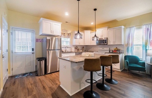 Relax in this stylish 3BR home just 10 mins from Uptown Charlotte! Enjoy a private hot tub, fire pit, grill, and spacious backyard—perfect for families or groups. Sleeps up to 10 with comfy beds and flexible living space. Self check-in at 4 PM, no pets, no smoking. A $300 refundable security deposit is required. Ideal for relaxing or exploring nearby attractions!