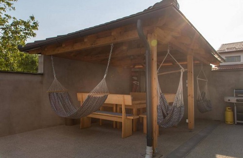 Guest House Thesaurum is situated in a small place Karanac located 30 km from city of Osijek. It features a swimming pool, a balcony and a furnished terrace, which makes it perfect for a quiet and relaxing family or friends' vacation. The property comes with free WiFi available throughout the property as well as air-conditioning. Fully equipped kitchen is at your disposal. Free private parking is provided, reservation is not needed. This guest house is pet friendly. This lovely four bedroom apartment with swimming pool, balcony and furnished terrace is perfectly fit for eleven people. It features free WiFi, air conditioning as well as LCD TV. Bedrooms are combined with living rooms that come with sofa and seating area. The kitchen is fully equipped and it comes with dining area. The private bathroom comes with shower and toilet. Free toiletries, hair dryer as well as linens and towels are at your disposal. You have access to iron and ironing board. Karanac is an etno village near city of Osijek. This place is most responsible for the revival of Baranja tourism, and satisfied visitors return regularly to enjoy the pleasant atmosphere of the Baranja village. You can enjoy beautiful countryside of Slavonia walking through Slavonia forests and trying their traditional cuisine in rural households. The nearest bus stop is 200 meters away and airport is 45 km away.
