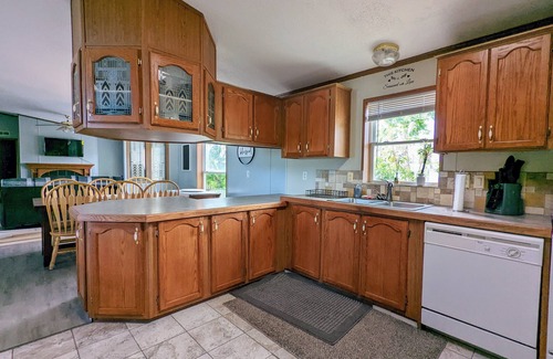 This newly remodeled open concept home not only offers enough space for you and your family to relax after a long day at the lake. The backyard is currently undergoing some rehab and has grass that needs to be established, but there is a grill and fire pit. With four bedrooms, two bathrooms, two living areas, and a fully stocked kitchen you'll never want to leave - besides to get to the lake and back of course. Send the kiddos off to one of the two bedrooms with Full over Full and Twin Trundle Bunk Beds. When dinner is done and the kids have gone to bed retreat to the master bedroom with a relaxing bath in the garden soaker tub and a good book. In the mornings you'll be ready to tackle the day's adventures after cooking breakfast in the fully stocked kitchen; complete with pots and pans, utensils, plates & bowls, etc. This home is on the outskirts of Ogallala while still close enough for an evening out at local restaurants and close enough to the lake you won't have to answer "are we there yet?" from anyone.