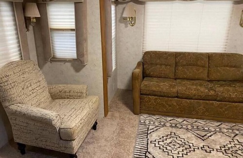 5th Wheel Camper with plenty of outdoor space is located in Greenville. 5th Wheel Camper with plenty of outdoor space provides accommodation, featuring TV, Security/Safety, Fireplace/Heating, among other amenities. This House features TV, Security/Safety, Fireplace/Heating, to make your stay a comfortable one.