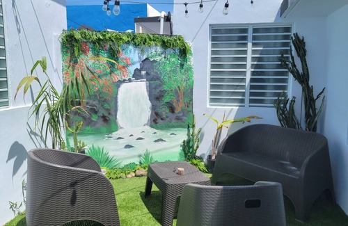 Just 5 mins from the airport, travel to your home away is a breeze. With the beach a mere 5 mins away, sun, sand, and surf await at your whim. 1-bed guest house radiates modern charm. Queen bed ensures restful nights. Open living area hosts a snug futon for extra rest. Seamless stay ensured with full bath catering to all, a well-equipped kitchen for delightful meals. Quick breakfasts or leisurely dinners Venture out to your private haven. Relax in the hot tub, soak cares away embrace fresh air.1. WiFi Connection: