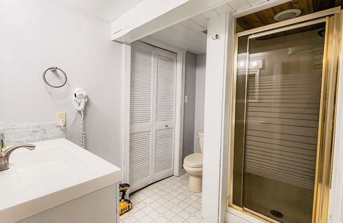 This cozy and charming lower level studio & former mother in-law suite has been beautifully renovated and is completely independent from the main home. Complete with its own private coded entry on the side of the house, a dine-in kitchen, bathroom, laundry, a comfortable full bed for sleeping two, and a living area with smart tv for streaming your favorite programs.