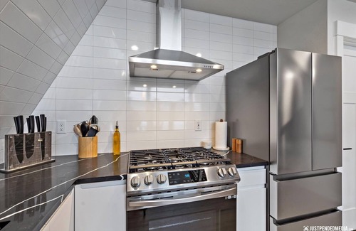This newly constructed modern A-Frame offers a unique and luxurious accommodation opportunity. It features a comfortable king bed with crisp linens, keyless entry, washer & dryer, gas fireplace, TV, WiFi, hot tub, and large windows so you can soak up beautiful Alaskan views while surrounded by a tranquil forest. The kitchen and bathroom are stocked with everything you need to feel right at home. Enjoy the cozy and comfortable atmosphere during your private escape.