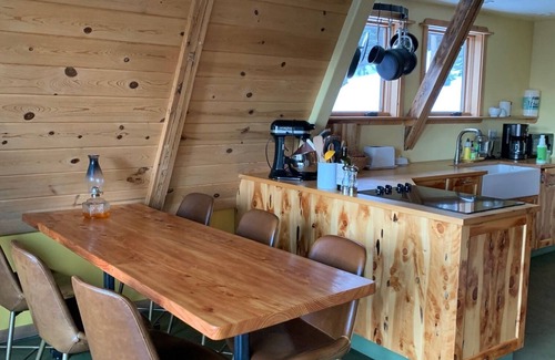 After your outdoor adventure, you can create culinary masterpiece in the large, open kitchen which is fully stocked with high quality pots, pans, and appliances. Relax together and enjoy the lake view in the open living/ dining room warmed by cozy wood fire or share a cocktail on the large deck in the fresh mountain air. We have books and games, Wi-Fi, and a Smart TV with Netflix.