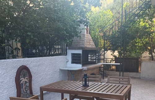 The house is a detached house in an urban area but in a very quiet street. It has a large living room and kitchen. There are two bedrooms with double beds. The larger bedroom has air conditioning, and the smaller one has a ceiling fan. The kitchen is fully equipped. The bathroom is small but has everything you need. There is a courtyard with a barbecue and a table with chairs. It's very quiet with trees around. There is one parking space. The metro is a 20-minute walk away, and the nearest market is a 10-minute walk away, which includes an uphill walk on the way back. The market is located on a main road with all means of public transportation as well as taxis. In the area, there is also a commercial street with large stores where you can buy everything you need (about a 20-minute walk from the house). Agia Paraskevi is a large city in Attica that is 20 minutes away from the center of Athens (Acropolis-Monastiraki) by subway. The nearest stop to the house is Nomismatokopio station. The airport is approximately a 20-minute drive from the house. It takes about 1 hour by subway. We can also provide transportation to and from the airport at an additional cost. Just let us know to inform you. Come and let us host you with joy!