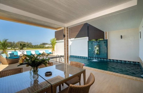 Introducing the Khanitha Villas Bangtao: A Luxurious 3-Bedroom Private Pool Haven Nestled in the serene region of Choeng Thale in Phuket, this exquisite 3-bedroom retreat harmoniously combines modern elegance with a tranquil ambiance. Available for rent, this exceptional property offers a blissful living experience in a prime location, surrounded by lush greenery and breathtaking natural beauty.