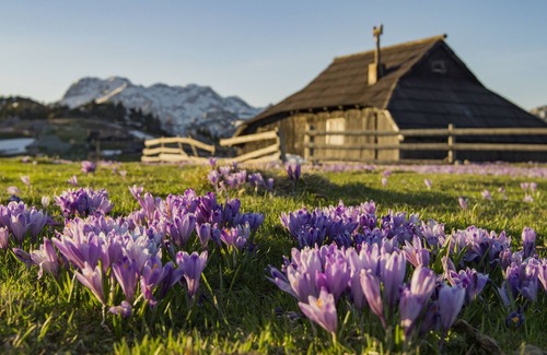 Relax in the comfort of a mountain chalet on Velika planina, where pure nature meets traditional living. Koča Ojstrica is a nice, warm and lovely chalet with amazing scenic views. It is in one of the best locations for spending a lovely vacation in the middle of mountains. The chalet is surrounded by a grassy garden with an outdoor seating and a BBQ. It is equipped with a cute kitchen, dinning table which sits 8 people and a modern bathroom with a hot shower. The downstairs bedroom is very private and comes with a queen sized bed. The upstairs bedroom is a cozy attic space with four single beds. The chalet also has an unique finnish sauna.