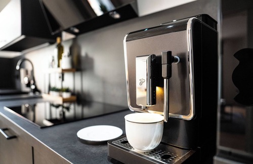 - Voll ausgestattete Design-Küche inkl. Toaster, Wasserkocher, Kaffeemaschine