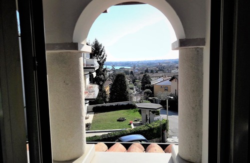 The apartment with partial lake view is in a quiet area and only 400 meters from the center (there is a descent) and from the beach with private parking and wifi.