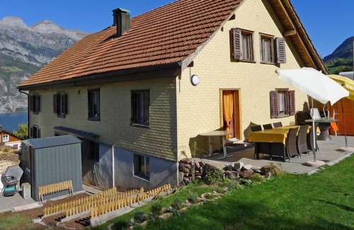 Cosy, rustic 2-family house "Im Hof", 3 storeys, surrounded by meadows. On the outskirts, in a quiet, sunny position on a slope, 2 km from the skiing area. Private: natural garden. Barbecue. In the house: storage room for skis, central heating system, washing machine, tumble dryer (for shared use). Motor access to the house. Parking at the house. Grocery 2 km, restaurant 2 km, railway station "Unterterzen" 2 km, shingle beach 2 km, lake Walensee 2 km. Gondola lift 2 km, skisport facilities 2 km, slopes 2 km, ski rental 2 km, ski school 2 km, children's playground 200 m. Well-known ski regions can easily be reached: Flumserberg 2 km. Well-known lakes can easily be reached: Walensee 2 km. Please note: animals in the neighbourhood.