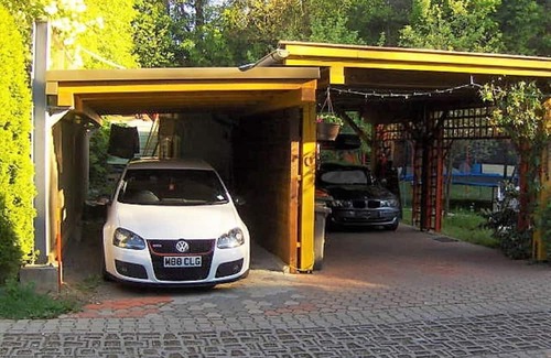The holiday apartment is on the upper floor of the house (suitable for families with max. 2 adults + 2 children or 3 adults) and is accessed via a private staircase next to the house. The holiday apartment offers a spacious living/bedroom, a small well-equipped kitchen, 2 bedrooms (one with 2 single beds), a spacious bathroom, an infrared sauna and a beautiful balcony. In the garden there is a trampoline, a pool (open from May-September and shared with other guests), garden furniture and sun loungers. You can park directly under the carport (with e-charging station) and there is also the option to rent bicycles and e-bikes (free of charge).