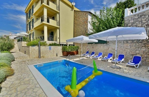 Apartment house "Leko". 130 m from the centre of Novi Vinodolski, in a sunny position, excellent location: right in the centre but still quiet, 450 m from the sea, 450 m from the beach. For shared use: swimming pool angular (8 x 3 m, depth 150 cm, seasonal availability: 01.May. - 15.Oct.). Outdoor shower, garden furniture, barbecue. In the house: internet access, table tennis, table football, washing machine (for shared use, extra). Airport transfer (extra). Narrow motor access to the house. Parking at the house on the premises. Shop, supermarket 130 m, bus stop 700 m, sandy beach, shingle beach 650 m, concrete beach 450 m. Please note: on request: airport transfer to the holiday accommodation. Private mooring (extra) on request. Parking at 200 m (fenced).