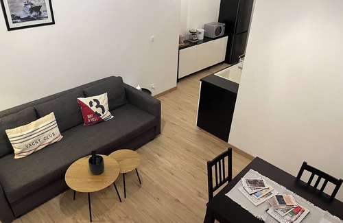 It consists of 2 bedrooms (1 bed 140x200 and 2 beds 90x200) a living room with a sofa bed (2 people) flat screen, DVD player and game console. A kitchen / dining room equipped (oven, induction hob, dishwasher, microwave oven and fridge). A shower room with WC and single washbasin. A launderette is at your disposal at 100 meters in the street of the Baths. Parquet throughout the apartment and double glazing.