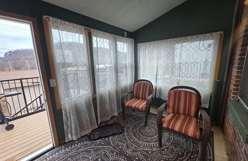 Fully equipped apartment with 2 bedrooms/1 bath. Back porch overlooking the river to hang out/grill after a day on the river. 1 queen bed in each bedroom, WiFi, AC, and heating. Stocked kitchen with all the necessities for cooking during your stay. Enjoy the convenience of laundromat just below the apartment.