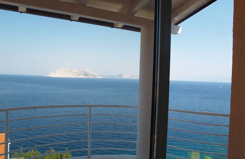 beautiful, modern apartment with large terrace / balcony, pool and grill as well as own parking lot and boat place in the port of Lukovo. Bedroom with separate air conditioning. Sheets available. Unforgettable sea views and sunsets. When they are quiet in the morning you see the ibex and the dolphins are often in season in the bay of Lukovo which is at their feet.