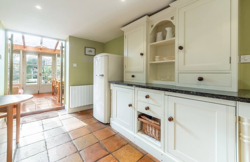 A popular holiday cottage for many years, Arch Cottage enjoys a modern heating system and upgraded bathroom, along with fresh country decor and stylish furnishings. The cottage presents as a very elegant and comfortable character cottage that really is a perfect bolt hole to escape to at any time of the year. On the ground floor, there is an invitingly cosy sitting room with ambient wood burning stove, a well-equipped spacious breakfast kitchen, and an charming dining conservatory that overlooks the pretty south facing garden. Upstairs on the first floor, three bedrooms (double, twin and a large single) and two bathrooms, one of which is en-suite. A distinct advantage in this bustling village is the garage parking which is suitable for a family-size car (not suitable for larger SUVs) or as secure bike storage.