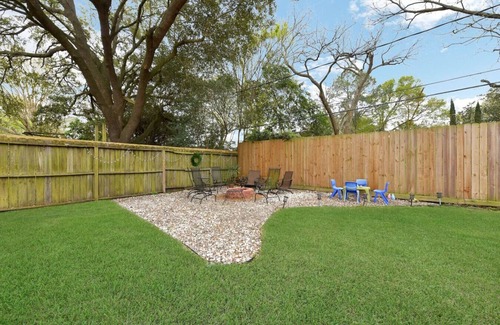Winner of top rental properties on AirDNA! Amazing location for Med Cntr, NRG, Galleria, & more! I have always felt safe in this family-oriented neighborhood. Outside, this urban home features a large, rural-feeling, fully fenced backyard w/ patio & fire pit. Inside you’ll find a modern open-concept layout, 4 cozy bedrooms & an office that includes a desk and printer(included in 4th bdrm). Located between the much-desired neighborhoods of Westbury & Meyerland, & perfect for families!