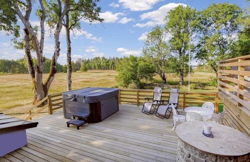 Very nice cottage, a stone's throw from the E45, by the restaurant Tössestugan. It is located next to Herrgårdshotel, where you can enjoy sauna sessions and bathing in the jacuzzi for a fee. From the terrace you have a fantastic view of the cultural landscape of Dalsland, in the background you can see the beautiful Västanåberget. You will also find some berries and mushrooms in the forests and meadows around. There are also many moose here. The nearby town of Åmål has a picturesque architecture and is also known for its blues festival and beautiful location on Lake Vänern. Of course, the whole family can also enjoy fishing and swimming here.