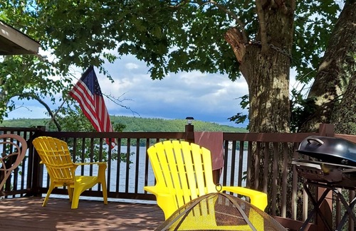 This is a lakefront cottage that sleeps 8 comfortably. Lakefront with your own personal dock, and a large deck with plenty of patio furniture as well as a charcoal grill with utensils. Fullsize kitchen with all small appliances and kitchenware. Enjoy this large space while overlooking beautiful Lake Winnipesaukee and a gorgeous mountain view. The cottage has 1.5 bathrooms, 1 large master bedroom with a queen-size bed and another bedroom with 1 full-size bed and twin bunk beds. There is also a sleeper sofa. Will sleep 8 guests comfortably. You must provide your own linens and towels.
