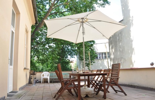 Enjoy large, comfortable and quiet apartment in very heart of Prague for up to 7 persons, with 2 bedrooms, 2 bathrooms, well equipped kitchen and great terrace.
