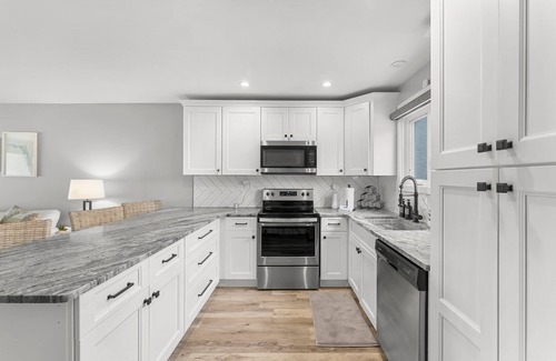 A fully furnished kitchen with all modern appliances with all the essentials to provide guests the amenities of home. Breakfast Bar