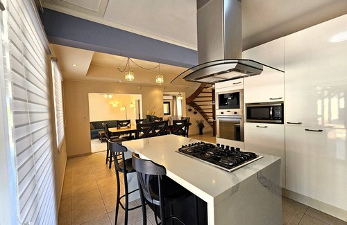 The kitchen is fully equipped and is designed with a modern touch and an island stovetop. You will be able to prepare all your favorite meals in this kitchen. The kitchen also features a built-in coffee machine for coffee lovers.