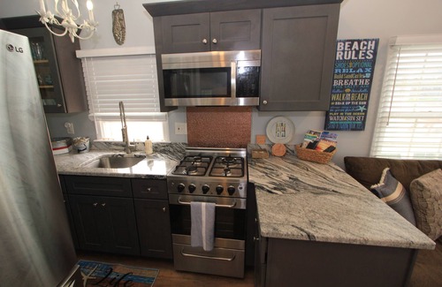 On the ocean side of the street sits this beautifully updated cottage with granite counters, stainless steel appliances and a comfy living room. The cottage has central A/C and an additional loft space for sleeping.