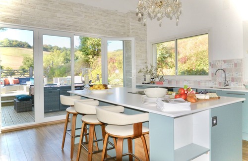 The house has many spacious entertaining areas - a large dining room with doors onto the front decking and garden, a large kitchen with breakfast bar (5 stools) and doors onto a decked outdoor seating area with a sofa set and dining table (seats 12). The tree swing is located here. There is a large sitting room with doors leading into the garden and a covered barn space (table tennis in the barn) with more outdoor seating options and BBQ. The swimming pool is 8m x 4m with a hard electric cover. It is surrounded on three sides by hedgerows and open to the overlooking barn end. There is a pool surface alarm fitted and an outdoor pool shower.