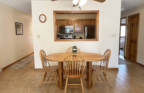This second-floor unit is bright, sunny, clean, and family-friendly. Enjoy the mountain décor throughout the three bedrooms, two full baths, and large, open-concept kitchen/dining/living area, including granite countertops and stainless-steel appliances. In warm weather, enjoy your meals or morning coffee on the large deck overlooking the woods and lawn. Venture down to lounge at the pool, play on the tennis court and basketball court, or explore the trails of Whitaker Woods right from the property!