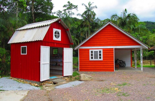 Charming fully equipped chalet. It has a bedroom with a double bed and a mezzanine with two single beds. Resting place amid nature in a quiet and beautiful region of Morretes, 5 km from the city center. Kiosk with wood stove and oven, as well as a fire pit AND A WAREHOUSE WITH PRODUCTS FOR SALE. Access to trails and the Iporanga River, with a natural swimming pool less than 300 meters away. The chalet has good books and a box of Legos. Bicycles can be rented.