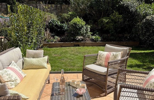 The terrace is furnished with an outdoor table, outdoor lounge, parasol and 6 chairs and is an external room to the house ideal forelaxing with a glass of local wine. The garden has a generous grassed area for sunbathing and enjoys a well landscaped terraced garden which offers complete privacy to the adjoining properties.