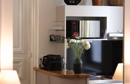 The Studio (24m2 and completely independent) is located on the ground floor of a large bourgeois house from the 19th century, completely refurbished.