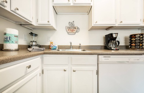Discover a fully furnished condo with a complete kitchen featuring a full-size fridge, stove/oven, microwave, and dishwasher. The living room boasts a queen sofa bed, though note pull-out couches are most comfortable for younger children. Enjoy entertainment on a large SmartTV with YouTubeTV and DVR movies. WiFi is included.