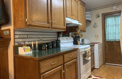 You can prepare fancy to casual meals; set the table with candles, cottage Corelle Dinnerware, cut glass stemware, or plastic dish sets. Everything you'll need is here, just bring your luggage and your groceries.