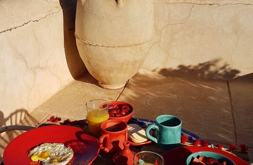 The materials used are typical of Berber architecture: adobe walls protect the interior of the house from cold in winter and heat in summer, ceilings reeds or briquettes, tadelakt floors.