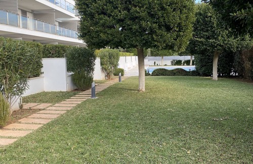 This modern apartment is located on the first floor of a beautiful building with a swimming pool and garden, in the Bóquer area of Puerto Pollensa, in a quiet and quiet area near the famous Pine Walk.