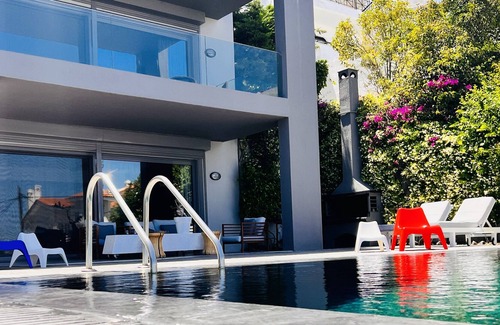 This modern stylish house has a unique view to the Aegean Sea! It's a luxury 6-10 person accommodation villa with a pool. Located 15 minutes from the airport, 5 min from the port and just a short drive to the best Greek beaches..!
