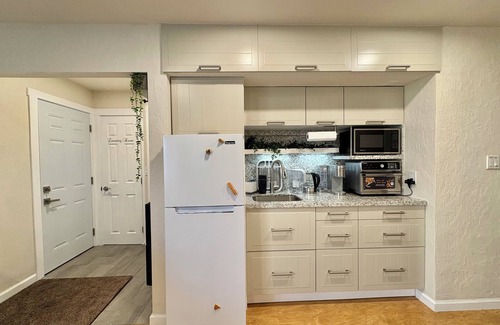 Welcome to our brand new luxury 2 bedroom/ 2 bathroom apartment. This cozy space is perfect for up to 4 adults and up to 2 children (under 13yo). A fully stocked kitchenette, Air Fryer, Keurig coffee machine with pods, electric tea kettle, microwave, massage chair and 2 hi-tech fireplaces with heaters. Portable stove. One of bathrooms has a bidet. 2 smart TVs and Xbox Series S Console for gaming enthusiasts. Sun room. Furnished and landscaped backyard. High chair, Pack-N-play are available upon request. Washer/dryer are in the unit. Parking is on the driveway.