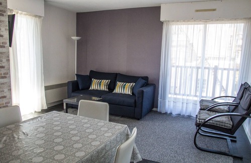Relax on the balcony (enjoy the outdoor furniture!) of this 549-sq-ft apartment. For a change of scenery, come inside and enjoy the free WiFi and TV.
