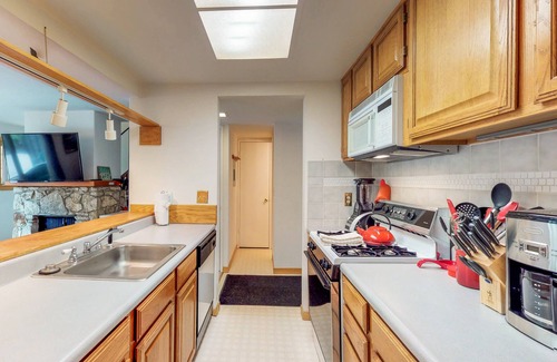 This bright and cheery condo is waiting for you to create long-lasting vacation memories! A fireplace is ready to provide warmth in winter, and the deck is perfect for relaxing on a sunny day. There is a full kitchen with a breakfast bar, and you'll have access to resort-style amenities on-site.