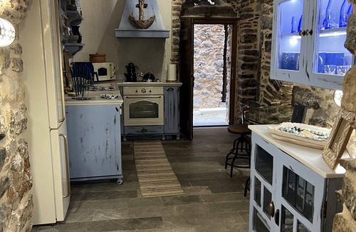 Bathrooms(One is Private in Second Room and Second on First Floor) and Kitchen are Re-Build with Archaeological and Original Taste.Dining Table is hiding in small cave made out of a olive tree and upon request gets pull out for Dinner/Breakfast.